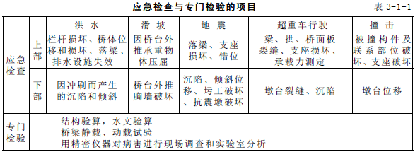 桥梁特殊检查的项目见表3-1-1。