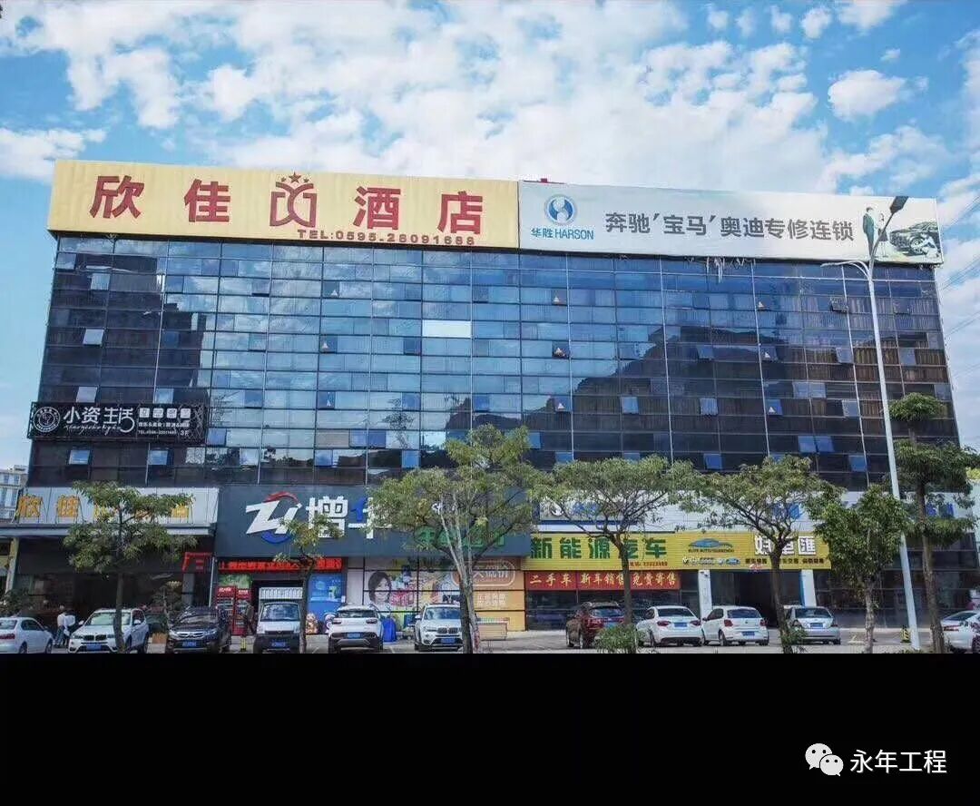 时代周报新媒体记者从知情人士处得知,此前建筑的一层为汽车维修、销售店铺, 2017年之前,每一层都是一个开阔的大厅。楼上要开欣佳酒店,2017年开始拉来水泥和砖,把宽敞的大厅砌墙,隔成了一个一个的小房间,2018年酒店开始营业。