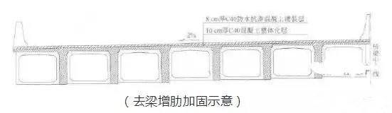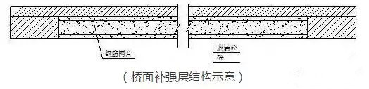 桥面补强层加固,即通过加强桥面铺装层结构强度,采取措施使原桥跨结构与铺装层形成整体,增大主梁有效高度及抗弯能力来改善行车条件和桥梁横向分布荷载能力。