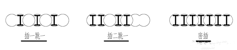 3、水泥土搅拌桩应按格栅布置,建议格栅布置形式如图所示(以双轴为例)。