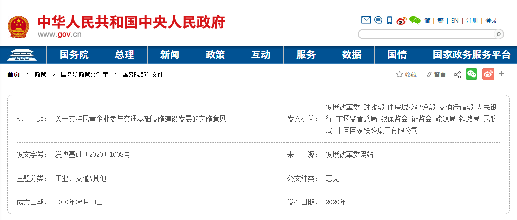 关于支持民营企业参与交通基础设施建设发展的实施意见